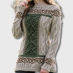 See sviiter eristub ainulaadse keltide inspireeritud detailiga – kontrastse jacquard-mustriga, mis loob klassikalise ja modernsuse sünteesi. Erakordne kudumistehnika ja hoolikas viimistlus tagavad vastupidavuse, mugavuse ja erilise stiili aura. Suurepärane valik naisele, kes hindab vaevatu elegantsi.