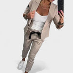 • Stiilne ja mugav kooslus – jakk ja spordipüksid ühendavad elegantsi ja vabaduse, luues modernse ja mugava stiili.