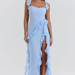 Mänguline ja elegantne kleit rafineeritud detailidega, mis rõhutavad naiselikkust. Kitsas korsett koos volangide ja lõhiku ning annab liikumise ja ainulaadsuse. Ideaalne õhtuste kohtumiste ja eriliste sündmuste jaoks.