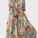 See pikk kleit maapinnaliste toonidega lillemustriga ühendab klassikalise elegantsi ja loodusliku värskuse. Selle disain ümbritseb keha õrnalt, samas kui vöö keskosas annab naiseliku ja hästi vormitud silueti. Kleit, mis toob kevade ja harmoonia igasse teie esinemisse.