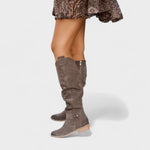Need kõrged kontsad pakuvad urbanistlikku stiili ja mugavust ühes sammus. Pehme, kerge pealmine osa elegantsete kortsudega järgib jala kuju ja loob lõdva, rafineeritud välimuse. Küljel olevad tõmblukud võimaldavad kiiresti jalga panna, samas madal plokknina pakub stabiilsust kogu päevaks. Peened detailid, nagu dekoratiivne pandla, lisavad rafineeritust, mis sobib kergesti kleitide, seelikute või teksadega. Ideaalsed tööks, kohvi joomiseks linnas või õhtuseks jalutuskäiguks.