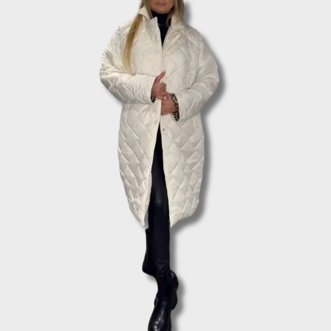 Valmistatud kõrgeima kvaliteediga materjalidest, see kahepoolne jope on loodud naisele, kes hindab nii mugavust kui ka rafineeritud stiili. Pehme, kerge kangas ümbritseb keha õrnalt, samas kui minimalistlik disain lisab modernset elegantsi. See on universaalne valik nii igapäevaseks kui ka eriliseks puhuks – alati stiilne, alati soe.