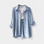 Kerge ja elegantne komplekt kõige kuumemate päevade jaoks. Ideaalselt sobib basseini äärde, jalutuskäikudeks või suvepuhkusteks stiilis ja mugavuses.