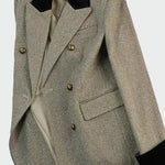 Muljetavaldav ülikond kaksikute sulgemisega, mis annab ajatu elegantsi igale välimusele. Selles on elegantne krae kontrastse tekstuuriga ja eesmine nööbid, mis lõpetavad sofistikeeritud välimuse. Sobib suurepäraselt igapäevaste šikkide kombinatsioonide jaoks, samuti professionaalseteks sündmusteks.