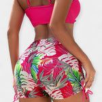 Korke vöökohaga bikiinid troopilise mustriga ja õlapaeladega