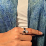 Meie eriline Monika sõrmus on suurepärane aksessuaar igasugusele riietusele! Kolme sõrmuse ja klambri kombinatsioon teeb sellest tõelise tähelepanu keskpunkti.