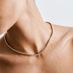 Lisage luksust Rivière karoliidega, mis on kaetud 14k kullaga. See ainulaadne ehe omab pidevat säravate kivide rida, luues imetlusväärse ja elegantse efekti. Sobib ideaalselt igaks juhuks, andes klassikalise ja peene aktsendi, et tõsta teie stiili.