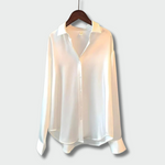 See siidpusa kiirgab elegantsi ja mugavust. Valmistatud kõrgeima kvaliteediga siidist, sobib see ideaalselt nii tööks kui ka erilisteks sündmusteks. Nautige pehmet, õrna tekstuuri ja stiilset, vaba siluetti.