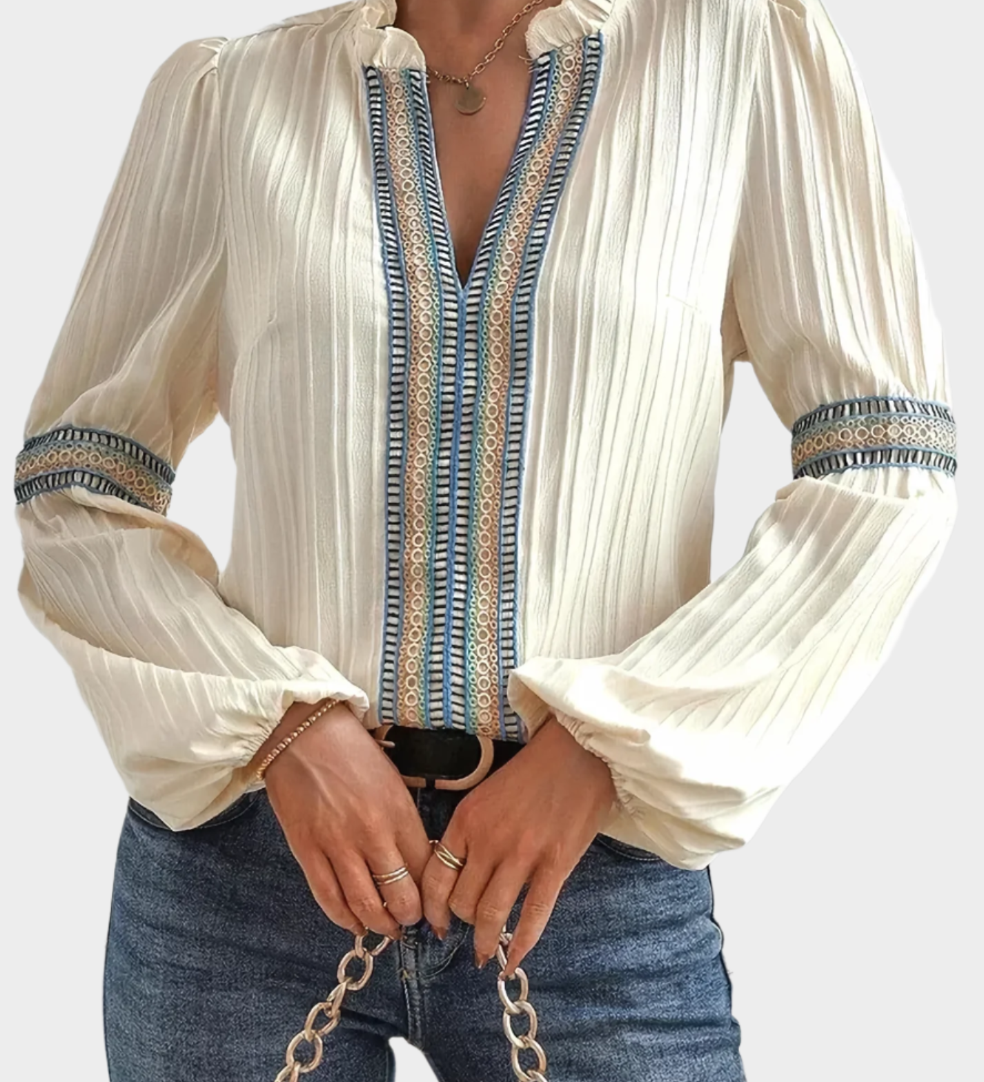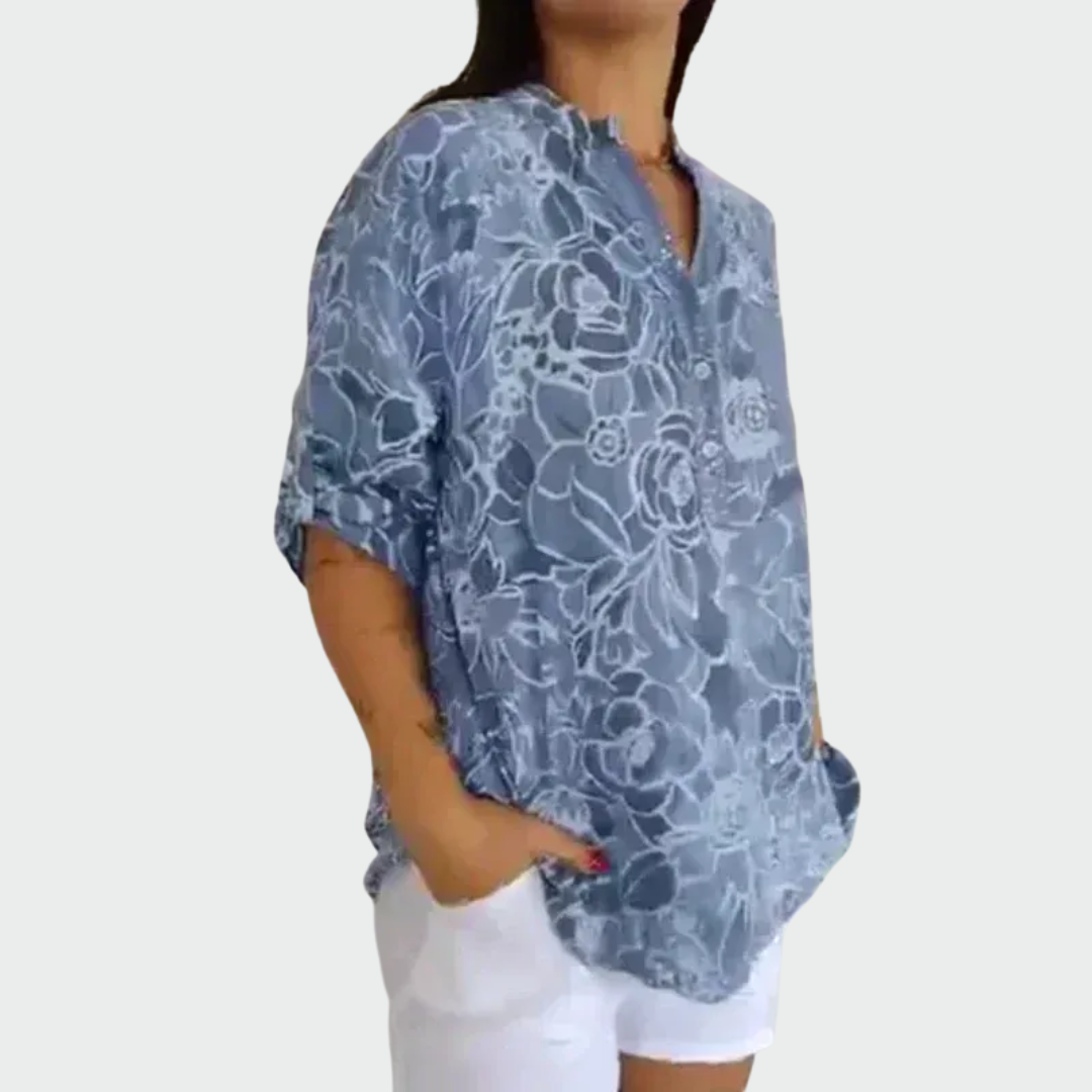 Lina pluus nööbiga ja V-kujulise kaelusega