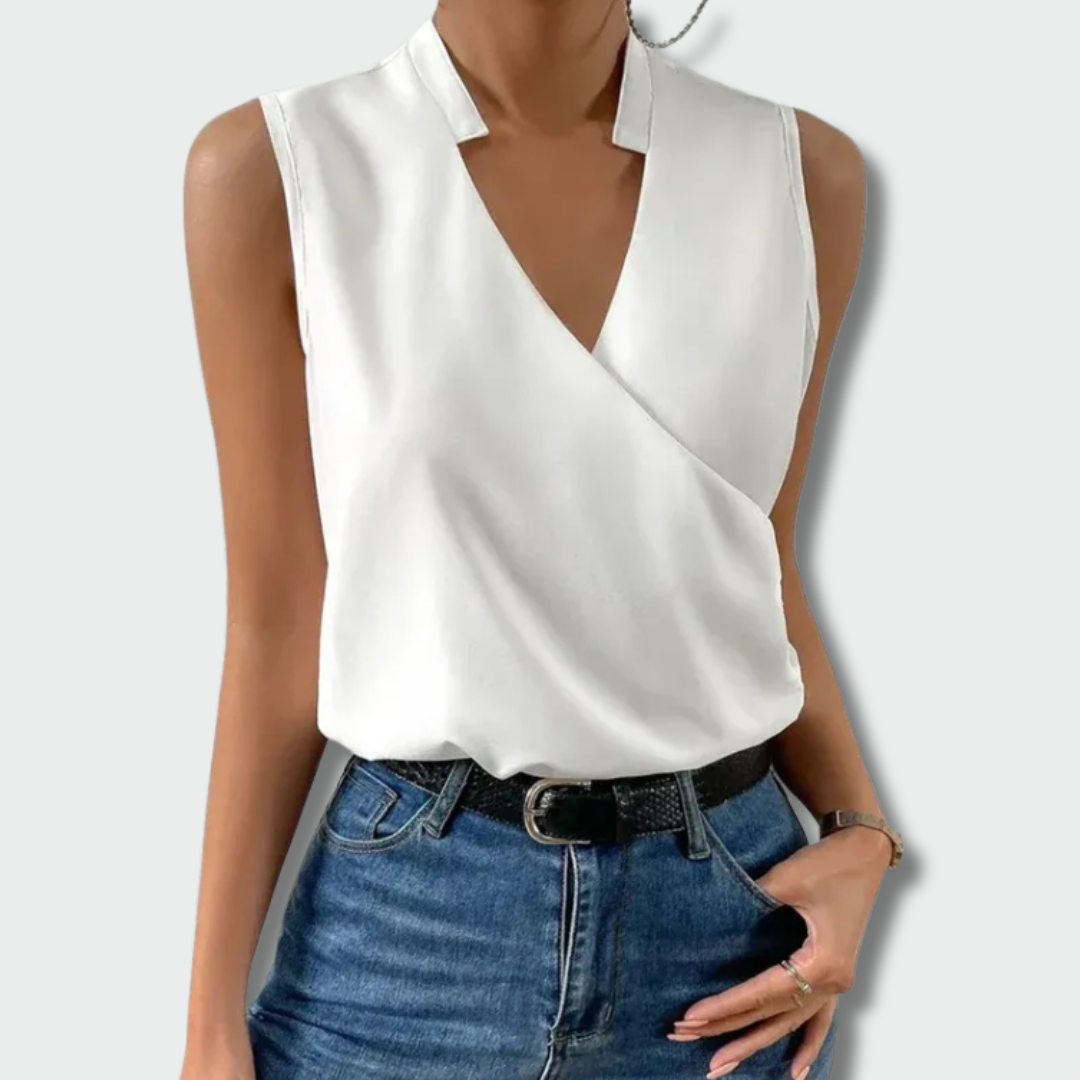 Elegantne Valge Satäänist Pluus Koos Dekoltee'ga