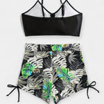 Kõrge vöökohaga bikiinid troopilise mustriga ja õlgade rihmadega