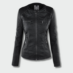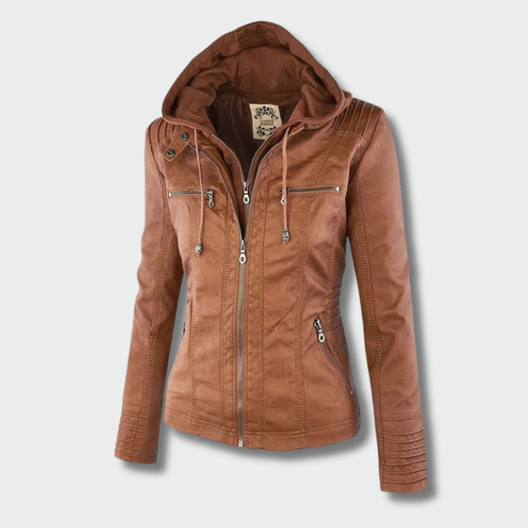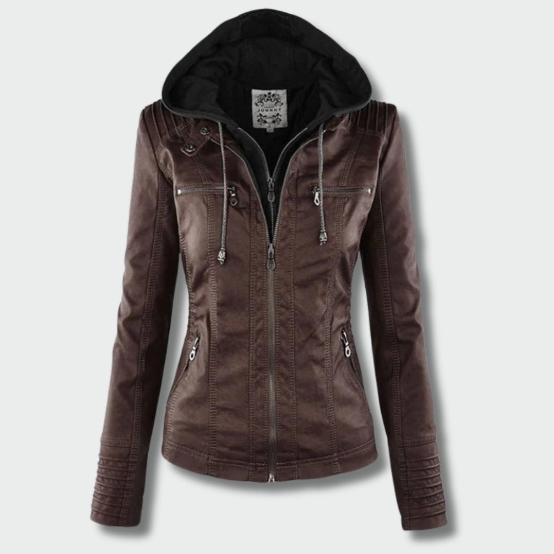 See elegantne nahkjope biker stiilis sobib suurepäraselt sügisse. Kõrge kvaliteediga nahk, detailide sobitamine ja salendav siluett annavad igale naisele enesekindlust. Eemaldatav kapuuts võimaldab hõlpsasti muuta igapäevast stiili õhtuseks.