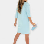 Oma ümmarguse kaelusega ja 3/4 varrukatega pakub see diskreetset elegantsi, samas kui mugav istuvus rõhutab iga siluetti.