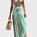 Tõsta oma suvine välimus selle muljetavaldava piparmündirohelise kleidi abil, millel on moodsad lõiked. Ideaalne puhkuseks, randadele ja stiilsetele õhtutele.