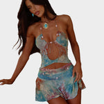 Näidake oma suvist stiili selle mini kleidiga värvilise mustriga. Avatud dekoltee ja muljetavaldavad lõiked ees annavad julge ja naiseliku ilme, ideaalne saarepuhkuseks ja õhtusteks jalutuskäikudeks.