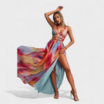 Karina - Elegantne ja Jahe Kleit loob unustamatu sisenemise oma sujuva silueti ja erksa akvarellikujundusega. Sobib suurepäraselt merepeodeks, troopilisteks puhkusteks või igaks hetkes, mis nõuab eristuvat elegantsi.