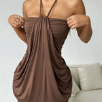 Šokolaadine Mini Kleit Kaela Sidumisega