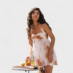 Mini Lillekleit kiirgab puhtat romantikat - peente lilledega pastelltoonis, halter-tüüpi kaelusega ja kergete šifoonikihtidega, mis kaunilt langevad. Ideaalselt sobib aiapidudele, suve brunch'idele või klaasi roosa veini nautimiseks päikese käes.