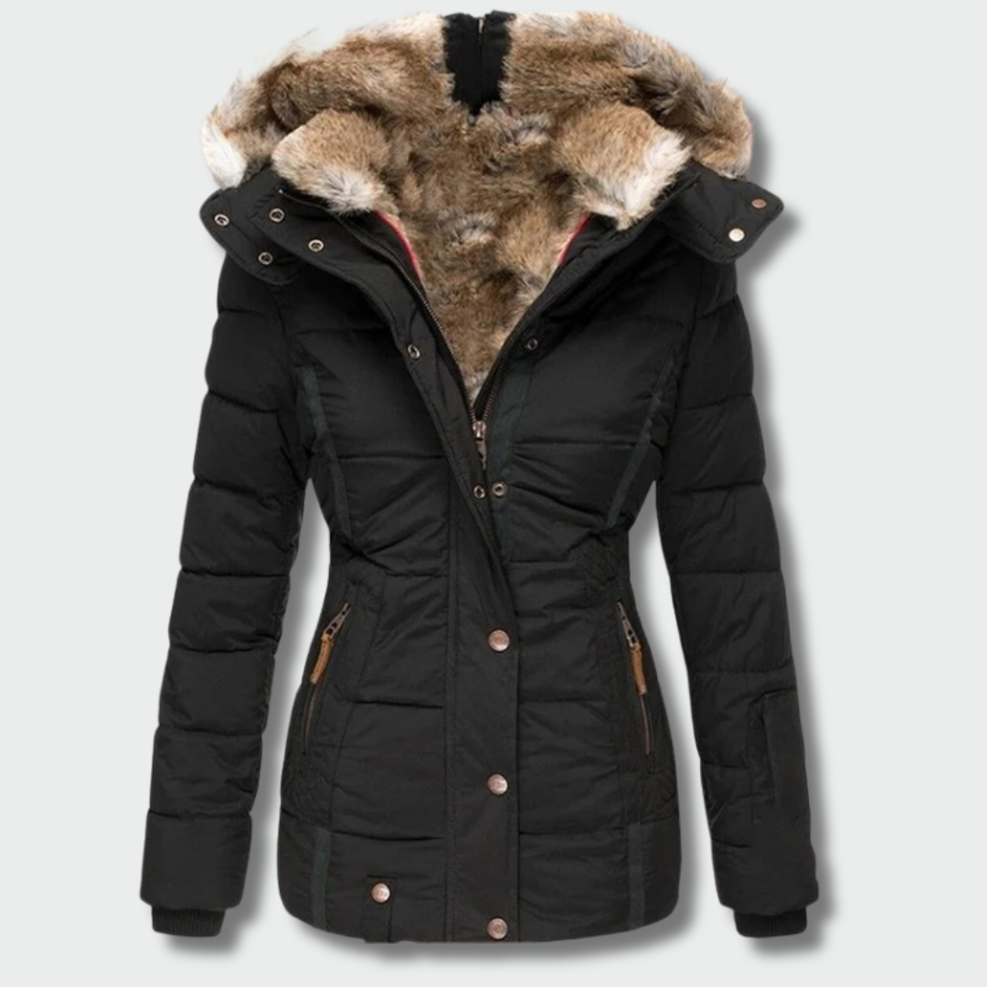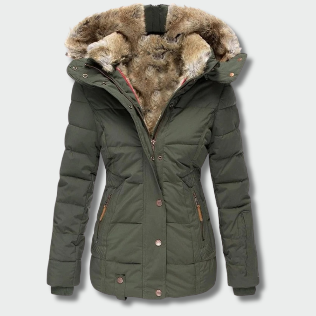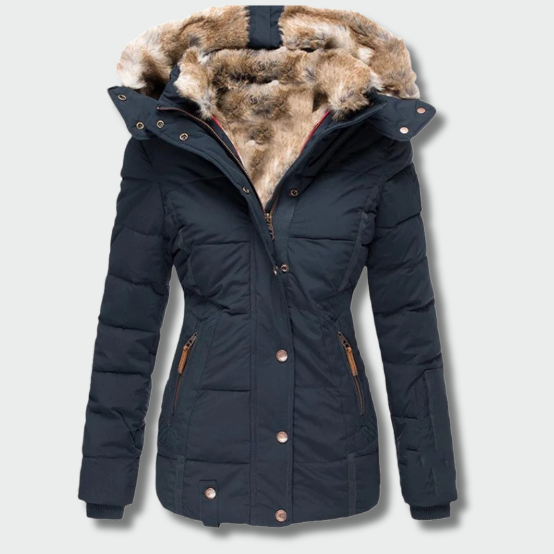 See voolav talve mantel omab õhukest siluetti ja pehmet isolatsiooni. See kaitseb külma, tuule ja kerge vihma eest, samal ajal säilitades naiseliku vormi ja stiilse välimuse.
