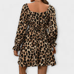 Jätke hea mulje selle elegantse kleidiga, millel on atraktiivne leopardimuster, mis ühendab rafineeritud ruudukujulise kaeluse naiseliku A-lõikega seelikuga.