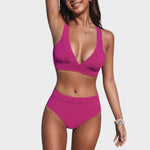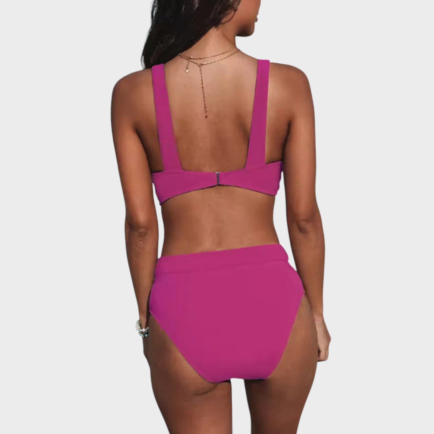 See bikini on loodud naistele, kes soovivad tunda end kaunina ja turvaliselt rannas või basseinis. Struktureeritud ülaosa ja laiad õlapaelad pakuvad suuremat tuge, tagades mugavuse ilma stiili ohverdamata. Kõrge vöökoht püksikud õrnalt vormivad siluetti, garanteerides elegantse ja moodsa välimuse.