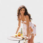 Mini Lillekleit kiirgab puhtat romantikat - peente lilledega pastelltoonis, halter-tüüpi kaelusega ja kergete šifoonikihtidega, mis kaunilt langevad. Ideaalselt sobib aiapidudele, suve brunch'idele või klaasi roosa veini nautimiseks päikese käes.