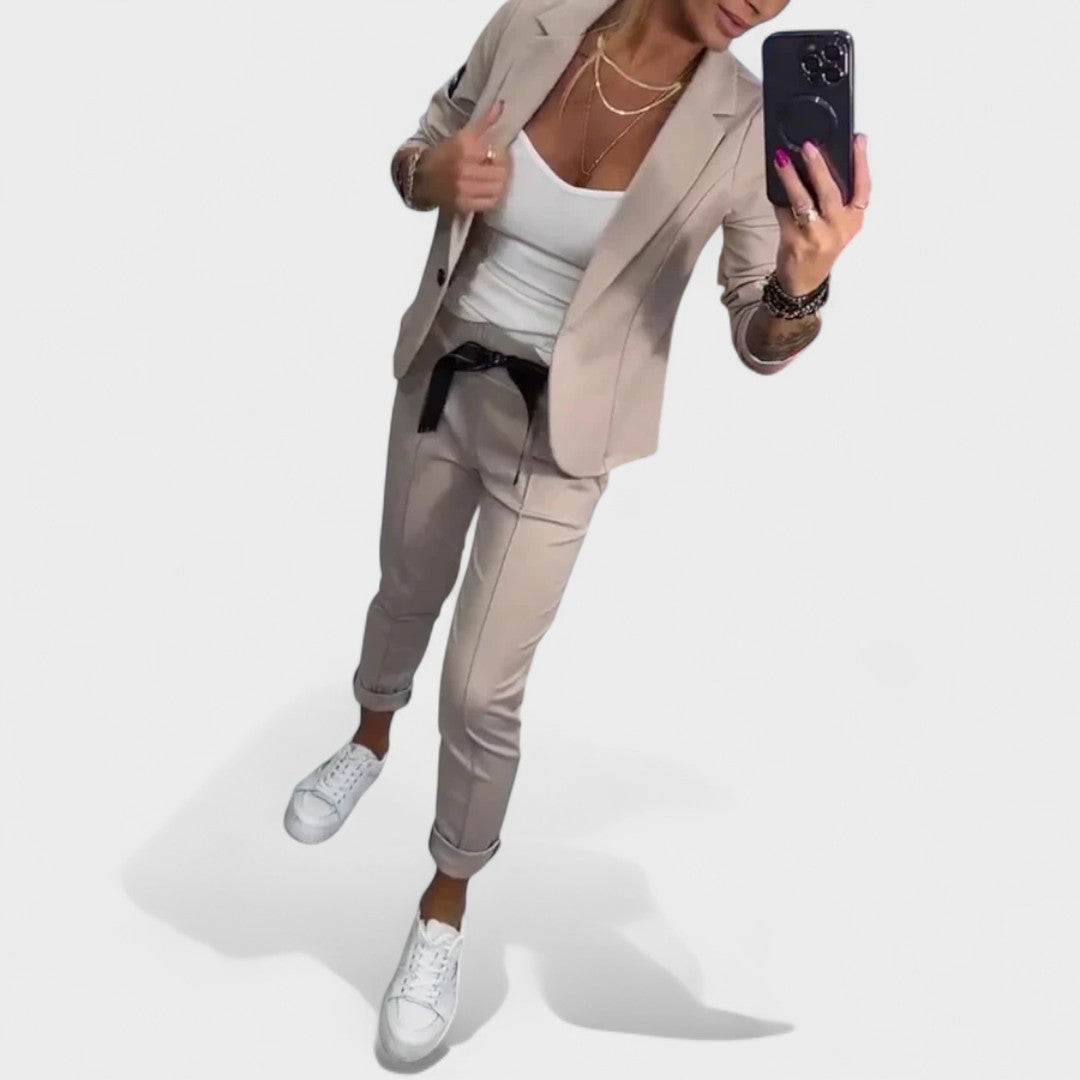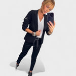 • Stiilne ja mugav kooslus – jakk ja spordipüksid ühendavad elegantsi ja vabaduse, luues modernse ja mugava stiili.