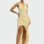 Elegantne mini kleit, mis õrnalt ümbritseb siluetti ja rõhutab dekolteed peene volangiga. Õhukesed rihmad ja naiselik kuju teevad sellest ideaalse valiku õhtuste esinemiste, pidude ja eriliste hetkede jaoks. See kiirgab romantikat ja rafineeritust, pakkudes mugavust ja liikumisvabadust igas sammus.
