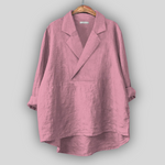 Elegantne lina bluson pehme värviga, mis kiirgab naiselikkust ja ajatut stiili. Sellel on V-kujuline kaelus ja elegantne krae, samas kui vabalt langev siluett tagab mugavuse kogu päeva vältel. Asümmeetriline viimistlus pikema seljaga lisab igale välimusele modernsust.
