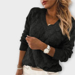 Noemier naiste kampsun V-kaelusega ühendab lihtsa elegantsi ja ajatu mugavuse. Selle atraktiivse V-kaeluse ja vabalt langeva silueti tõttu pakub see kampsun täiuslikku stiili ja mugavuse kooslust. Olgu need igapäevased toimetused, kontor või nädalavahetuse lõõgastus – Noemier on alati õige valik.