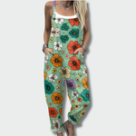 See naiste kombinesoon erksate lillemusteritega sobib ideaalselt igapäevase ja piduliku stiili jaoks. Looduslik lõige ja taskud tagavad mugavuse, samas kui värvikas esteetika toob esile sinu isikupära. Ideaalne kevadiste või suviste jalutuskäikude ja erilise stiili jaoks.
